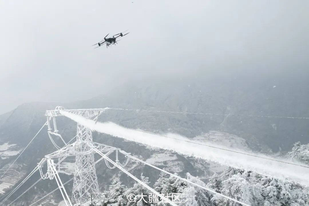 冰雪覆盖积压将导致支撑高压线的铁塔负重加大,可能引发导线过度拉伸、断裂,甚至电塔倒塌,严重可造成电力系统大范围停电。此前,国网四川送变电公司等单位已在多地采用大疆运载无人机FC30进行线路除冰工作,以下是完整的工作流程总结分享。