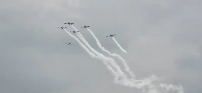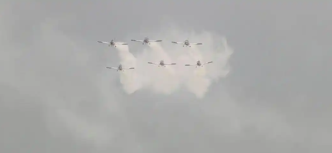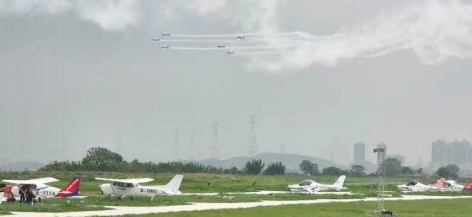 在当天的2026年第四届全国轻型飞机锦标赛开幕式现场,多架轻型飞机依次升空,六机花样编队、小半径盘旋、对冲等高难度动作一气呵成,随后的拉烟表演更将氛围推向高潮,翱翔的机组与北江两岸的秀美山水相映成趣,为现场观众带来震撼的空中视觉体验。本周末(4月11日—12日)2026航空游牧季·飞行嘉年华也热闹开场。
